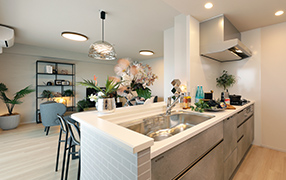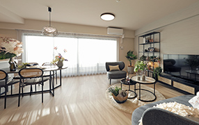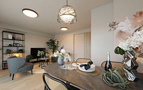 - ※掲載の室内写真は、棟内モデルルーム1402室(2025年10月)、1403室(2025年3月)にて撮影したもので、家具・調度品等は分譲価格に含まれません。一部オプションを含みます。あらかじめご了承ください。