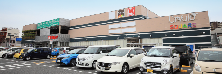 2020年11月にリニューアルオープンした大型スーパー。地上2階建・店舗面積は2,718㎡の広さで、1階の核店舗「関西スーパー」は、「いつも暮らしの近くにいます!みんなの笑顔とおいしさ・楽しさに出会える店」をコンセプトに朝9時から夜22時まで営業しています。また暮らしに何かと便利な100円ショップ「セリア」も気軽に利用できます。